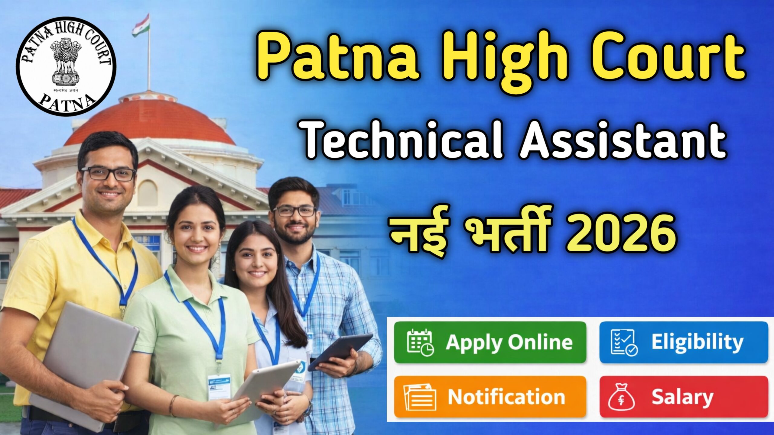 Patna High Court Technical Assistant Recruitment 2026 के तहत युवाओं के लिए एक बेहतरीन सरकारी नौकरी का अवसर सामने आया है। यह भर्ती Patna High Court द्वारा जारी की गई है, जिसमें कुल 53 पदों पर Technical Assistant की नियुक्ति की जाएगी।