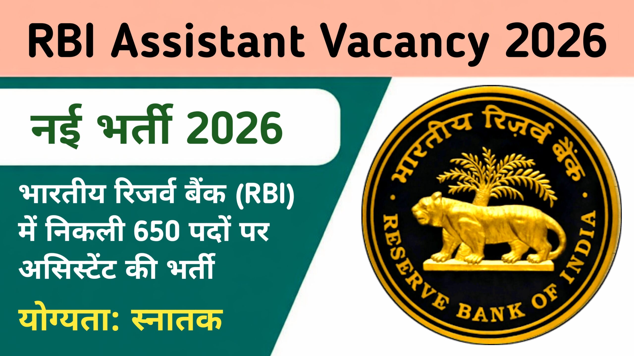 Ans. RBI Assistant Vacancy 2026, Reserve Bank of India (RBI) द्वारा 650 Assistant पदों पर नियुक्ति के लिए जारी की गई एक आधिकारिक भर्ती प्रक्रिया है। इस भर्ती के माध्यम से योग्य उम्मीदवारों का चयन ऑनलाइन परीक्षा के आधार पर किया जाएगा।